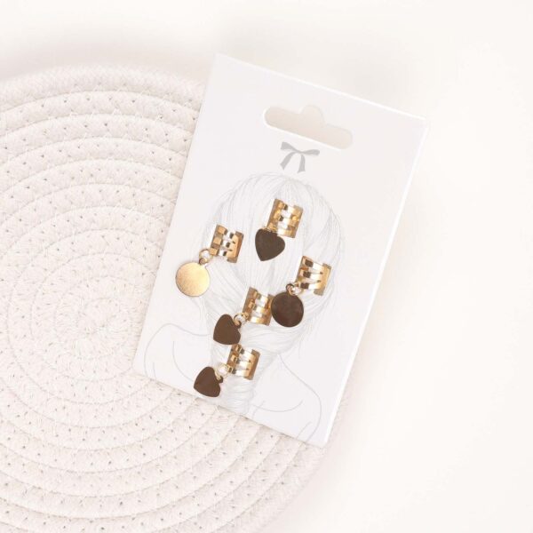 Gold Heart & Circles Hair Rings