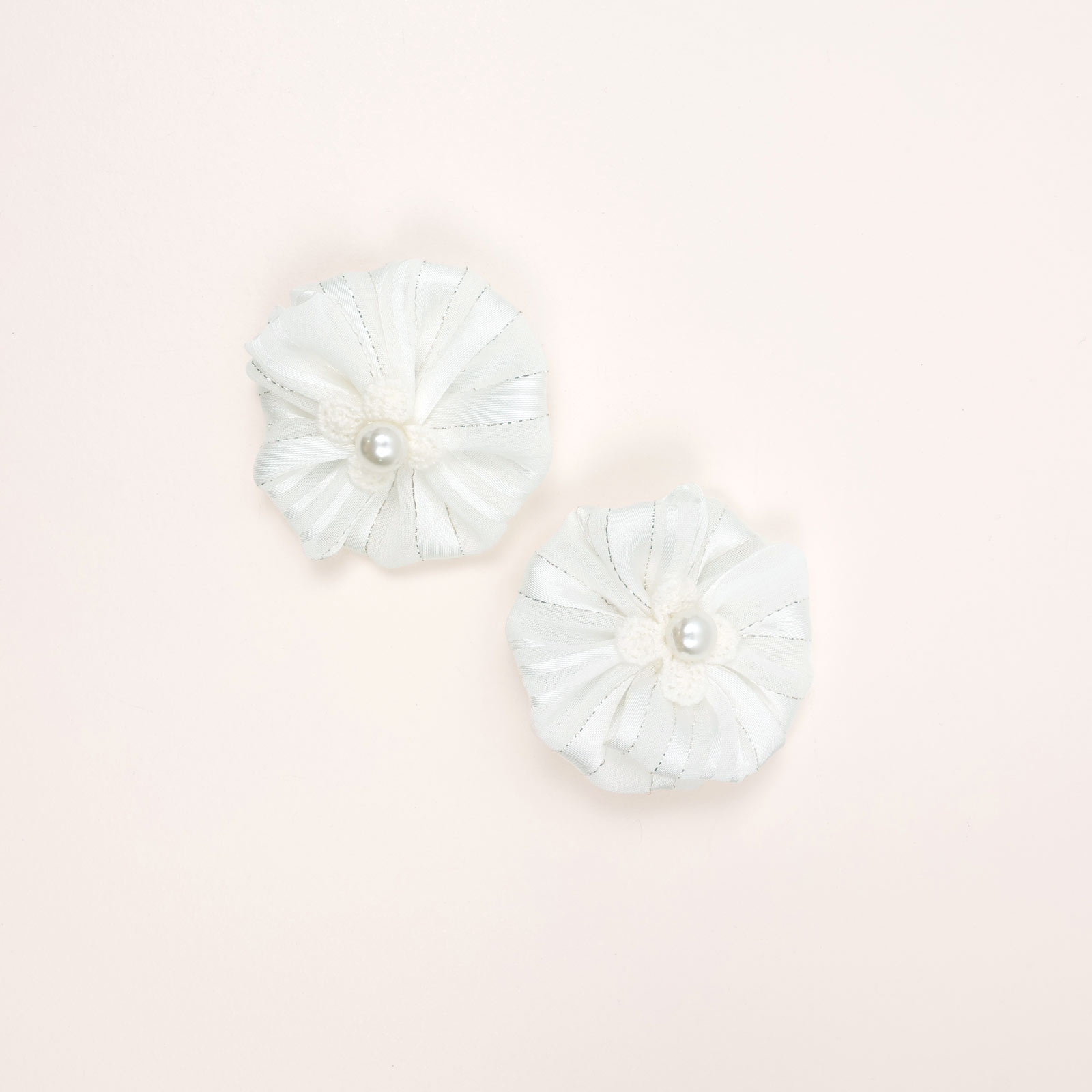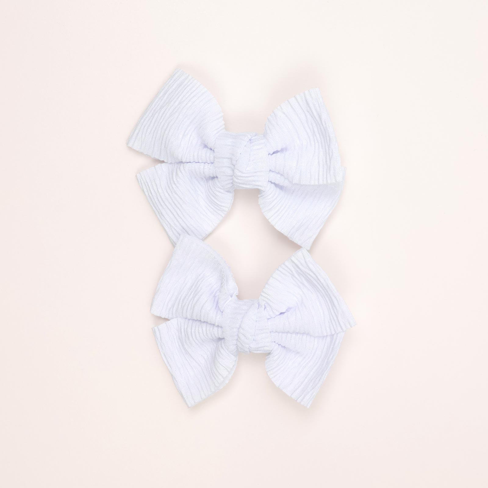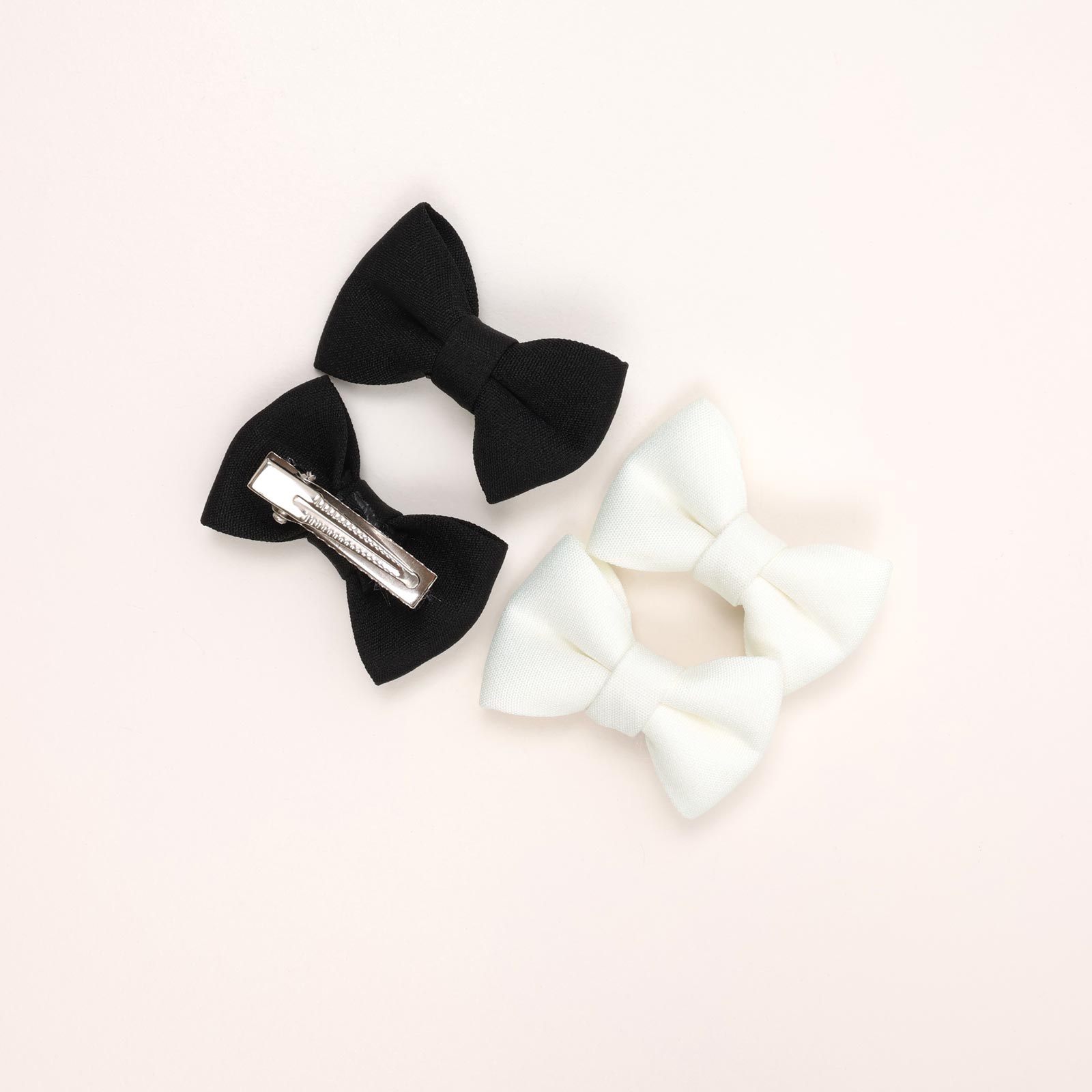 An elegant set of 4 fabric bows hair clips in black and white. Perfect for everyday wear or special occasions, these durable and stylish bows add a neat touch to your look.