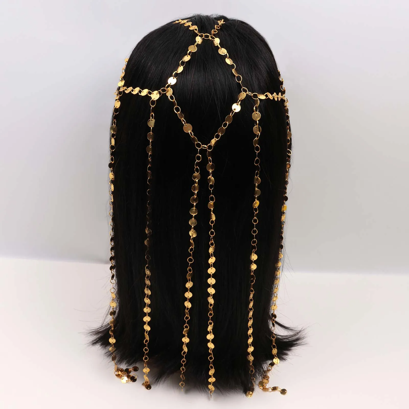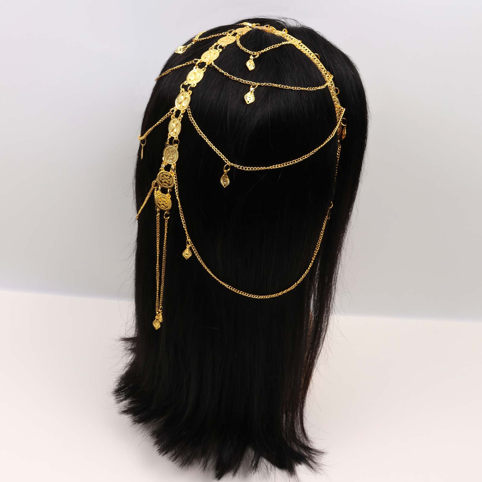 A single gold-tone hairband featuring linked metal chains.