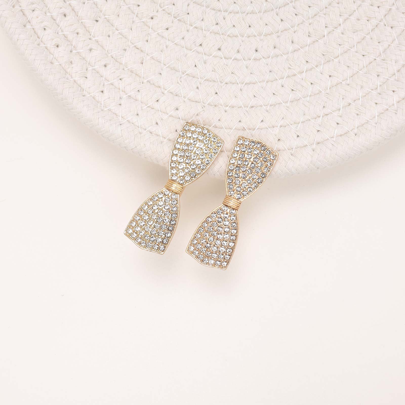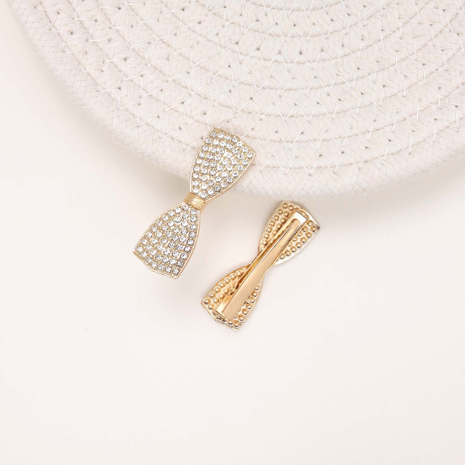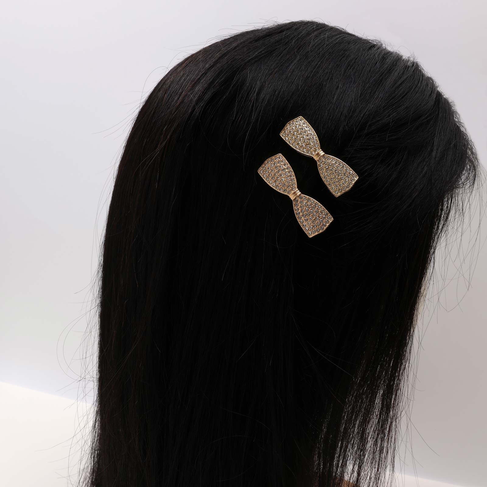 Set of two bow-shaped hair clips featuring a gold-tone finish fully encrusted with crystals.