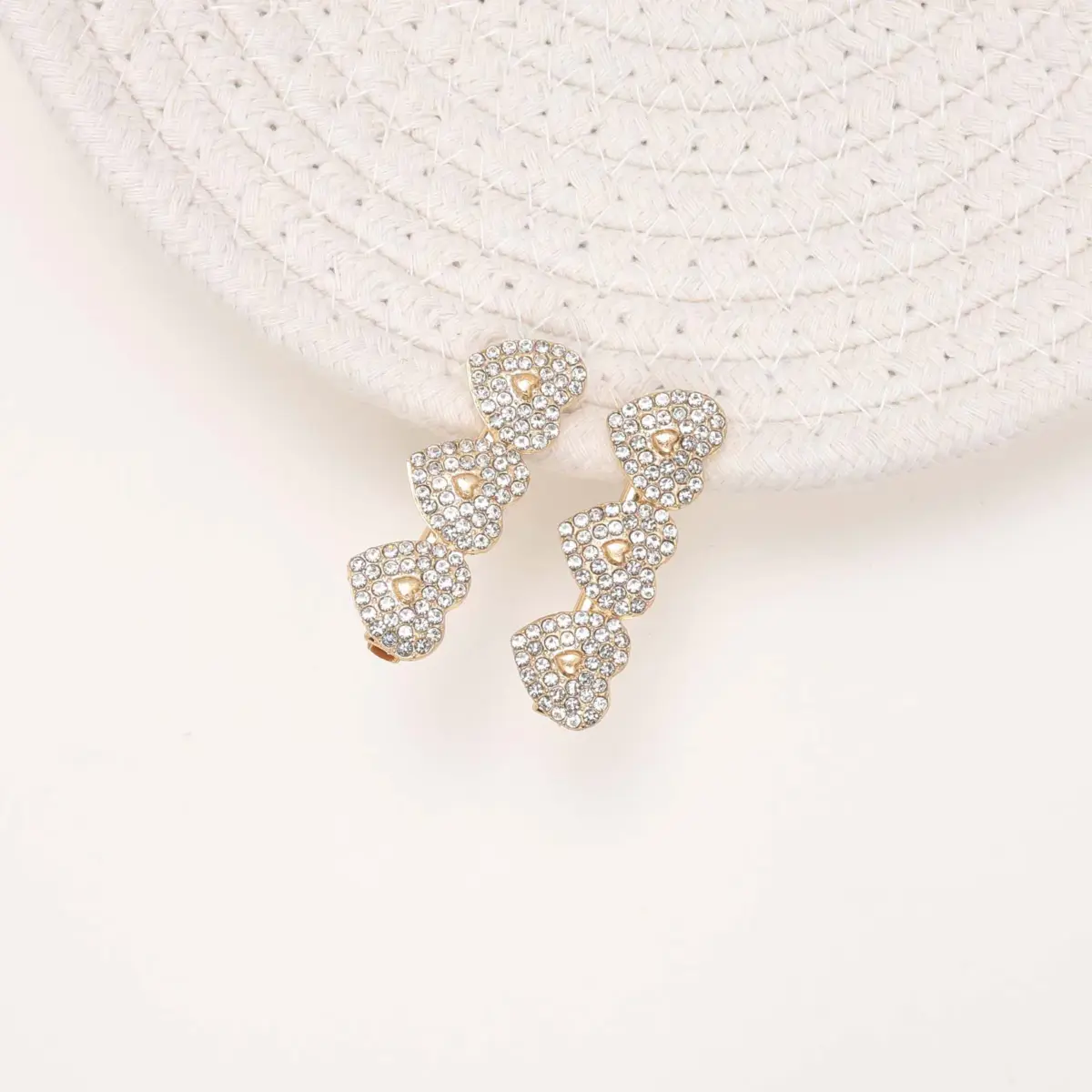 Set of two hair clips featuring triple heart shapes in a gold-tone finish, embellished with clear crystals.