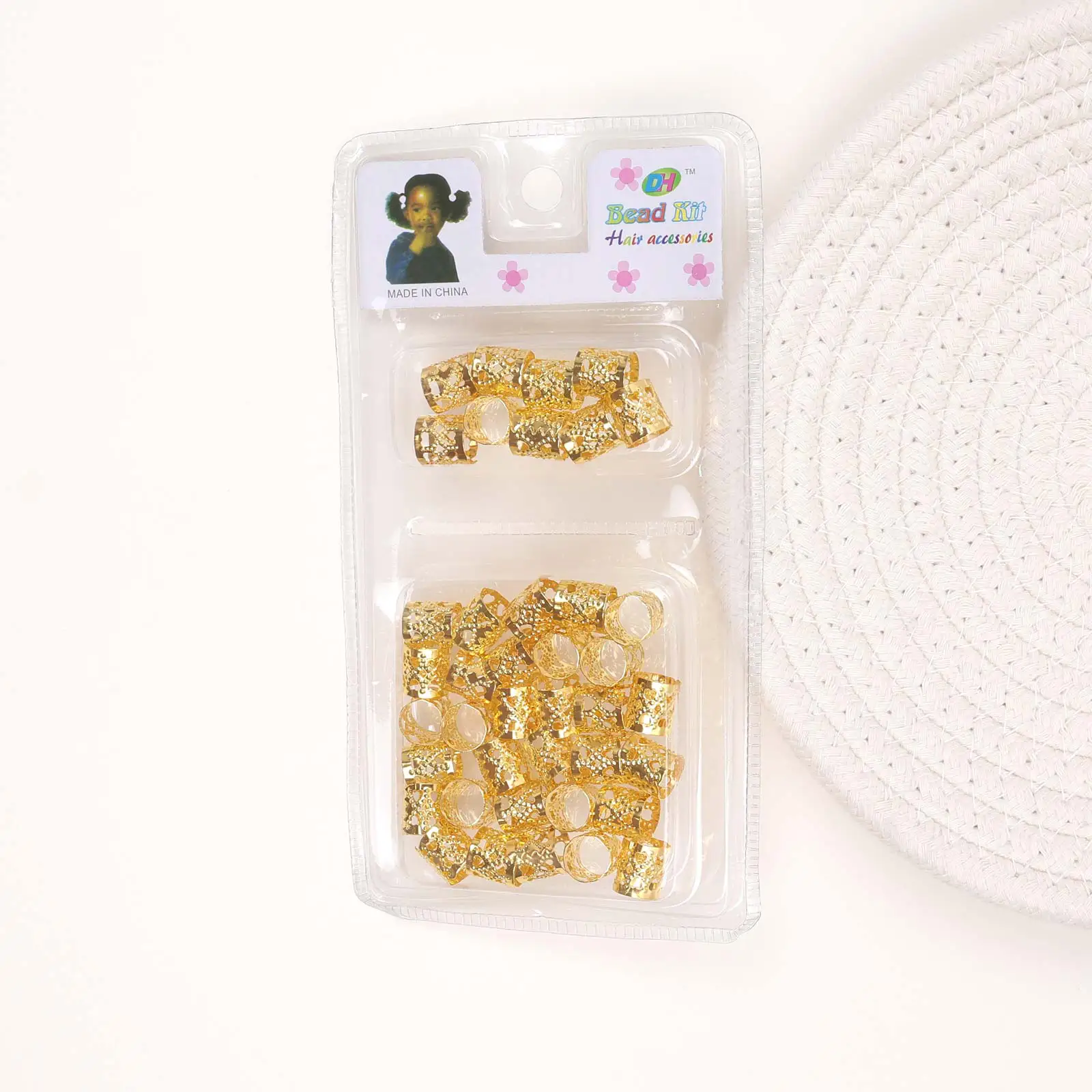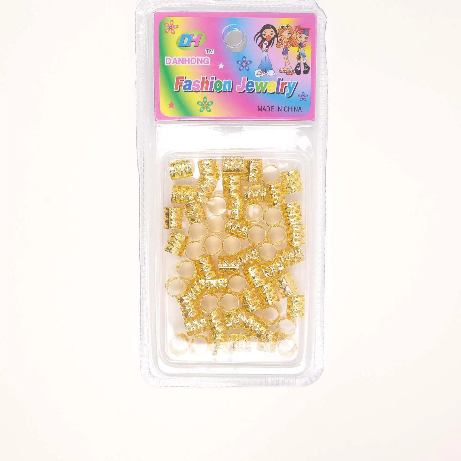 Elegant gold-tone hair rings in assorted sizes and patterns, designed to add a stylish, eye-catching touch.