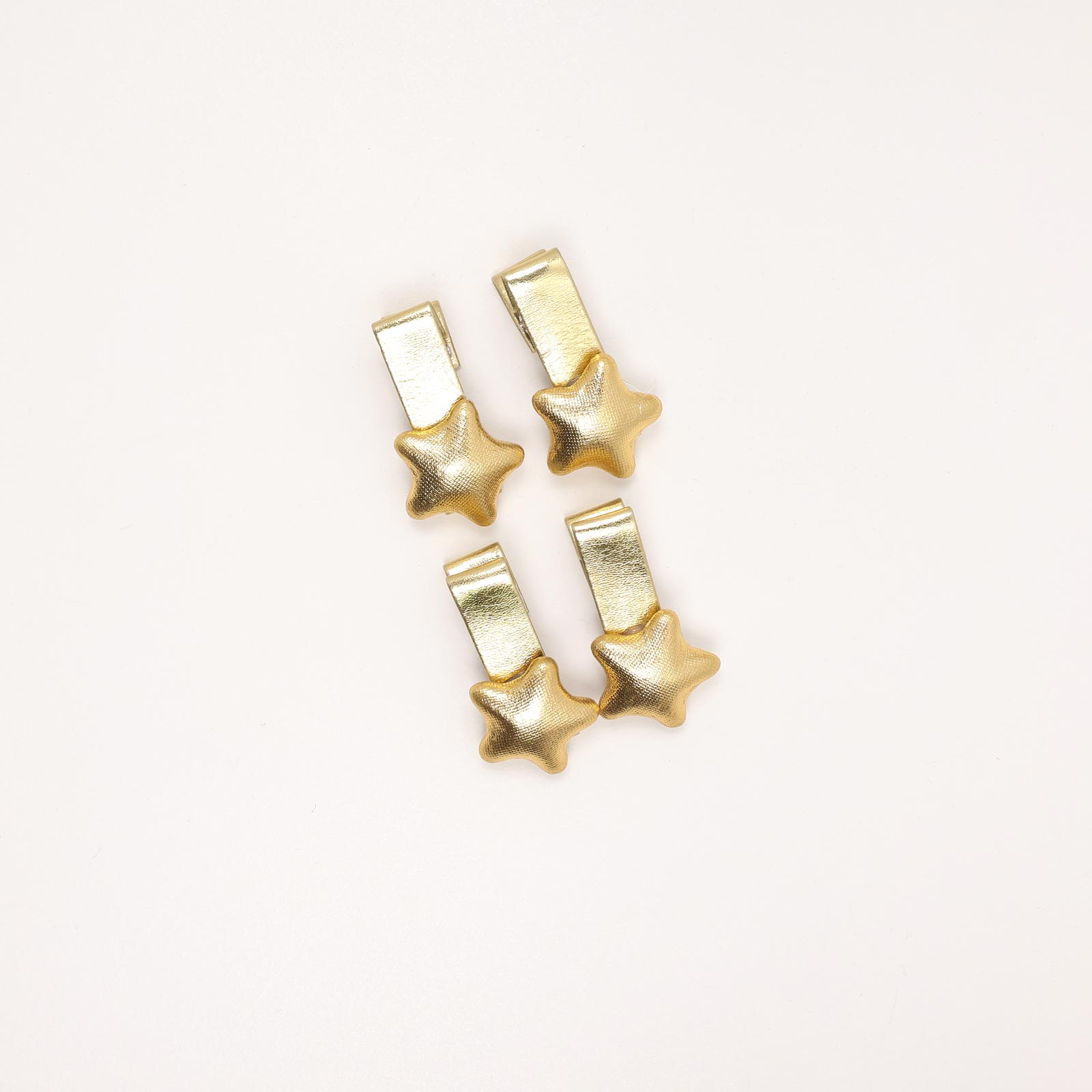 Set of four gold-tone hair clips featuring padded star accents with a soft textured finish. Snap clip design, Lightweight and easy to style.