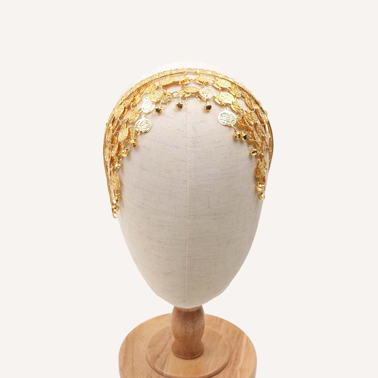 A gold-tone hair band with cascading embellishments.