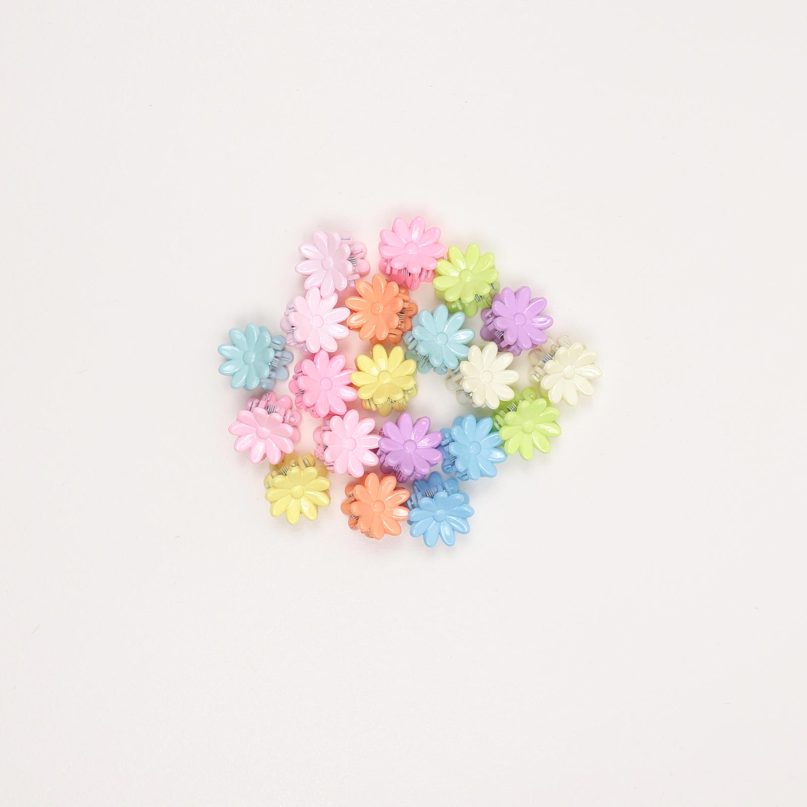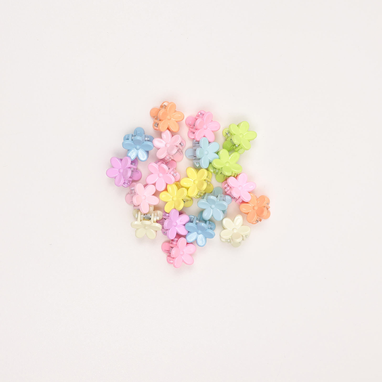 Cute mini flower hair claw clips in soft pastel colors. Lightweight and set includes 20 pieces in assorted pastel colors.