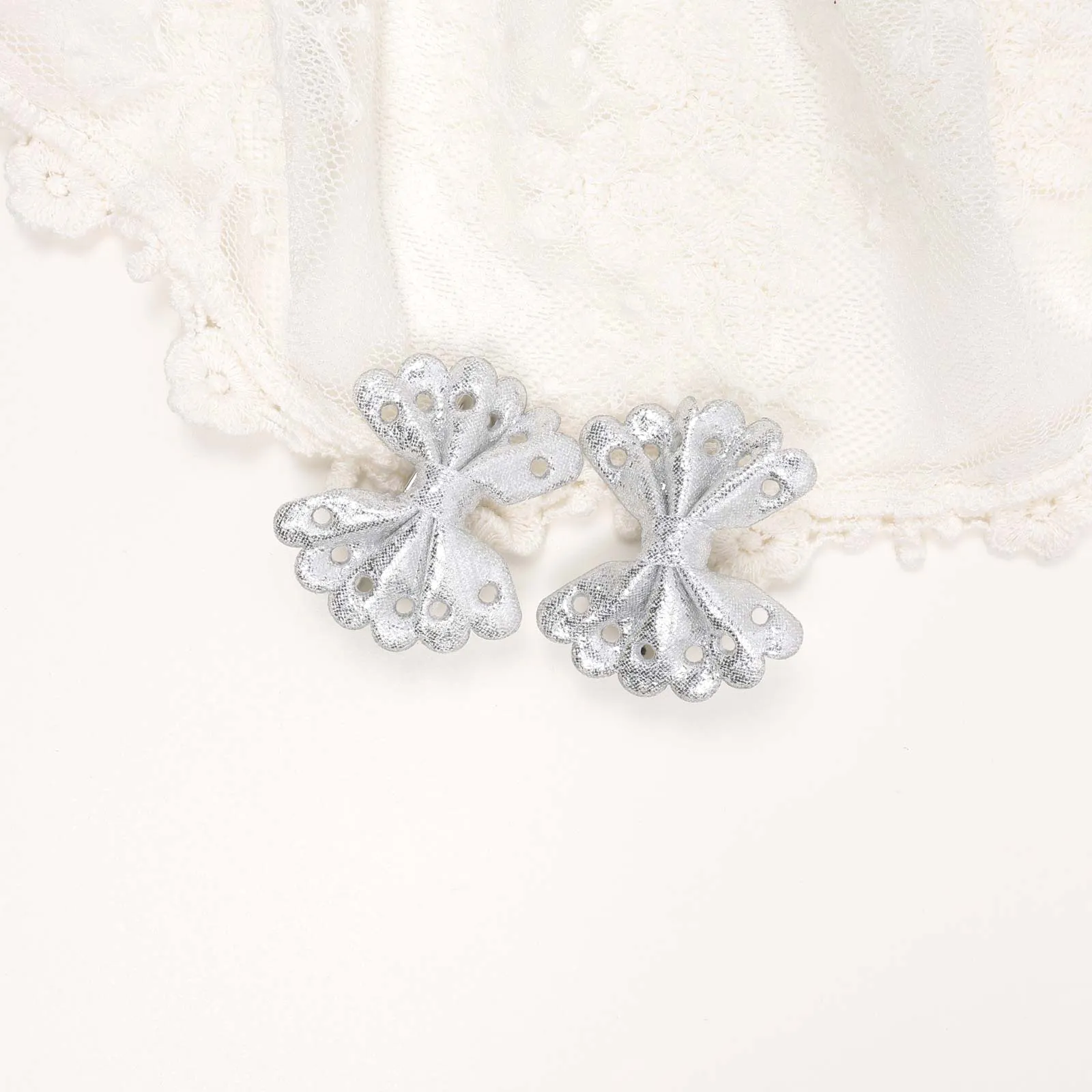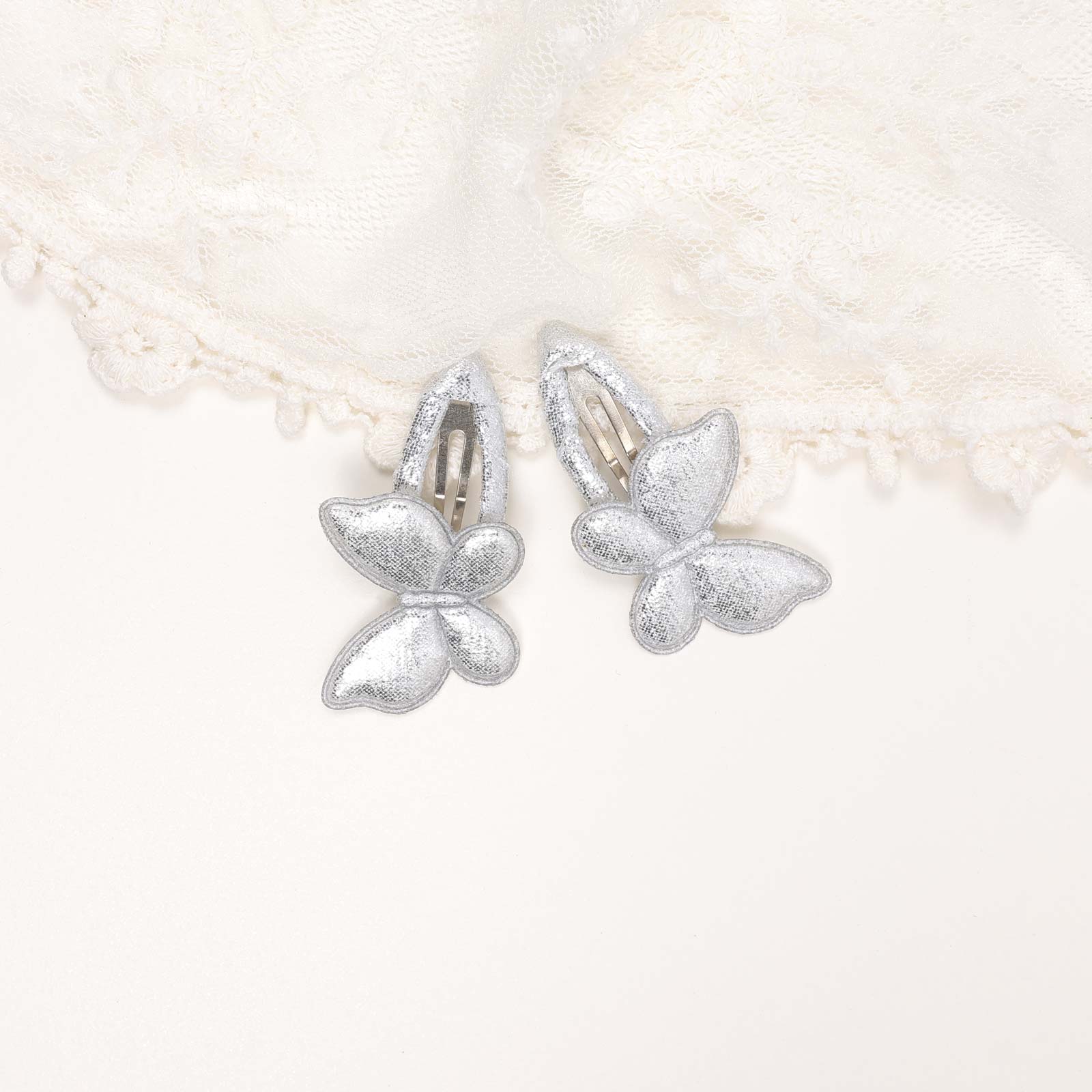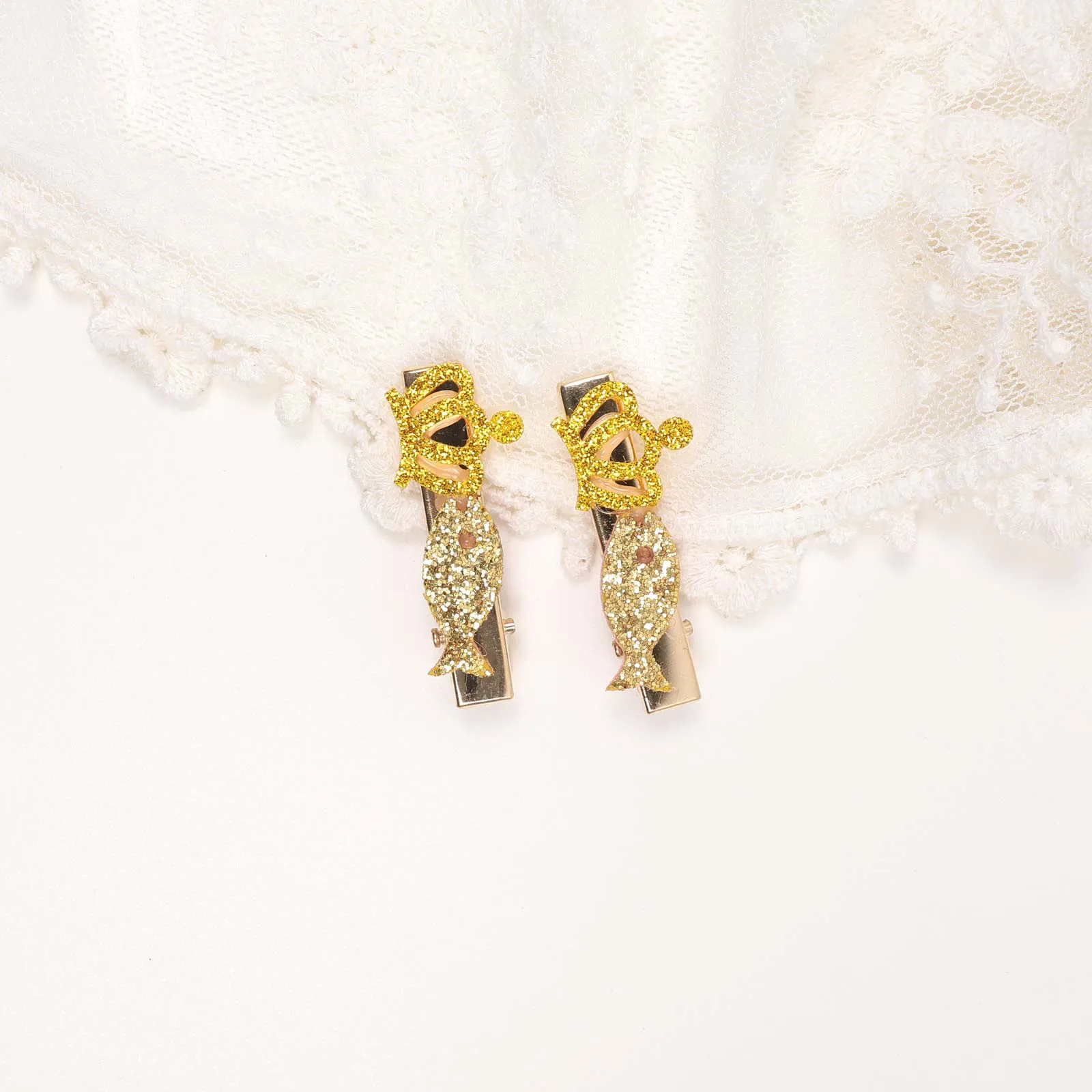A delicate butterfly hair clip with wings covered in shimmering gold glitter.